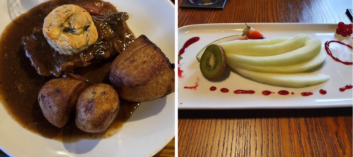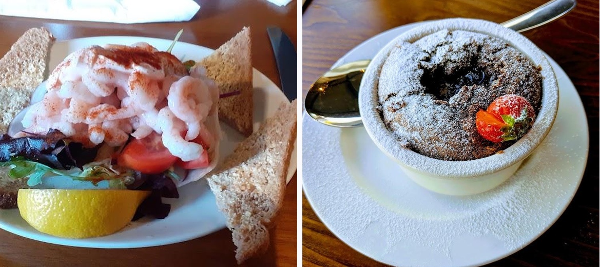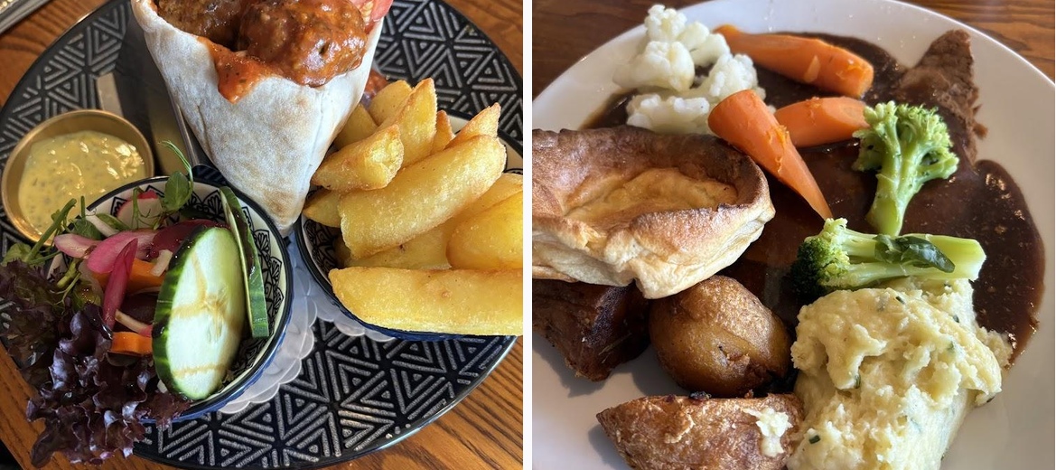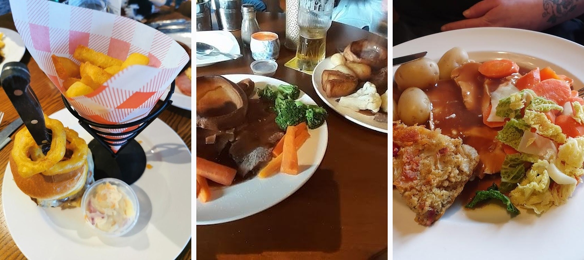 Definitely start with the Homemade Soup of the Day or the Traditional Prawn Cocktail as starters. For mains, the Roast Topside of Beef with Homemade Yorkshire Pudding is a must-try, along with the Roasted Leg of Lamb.